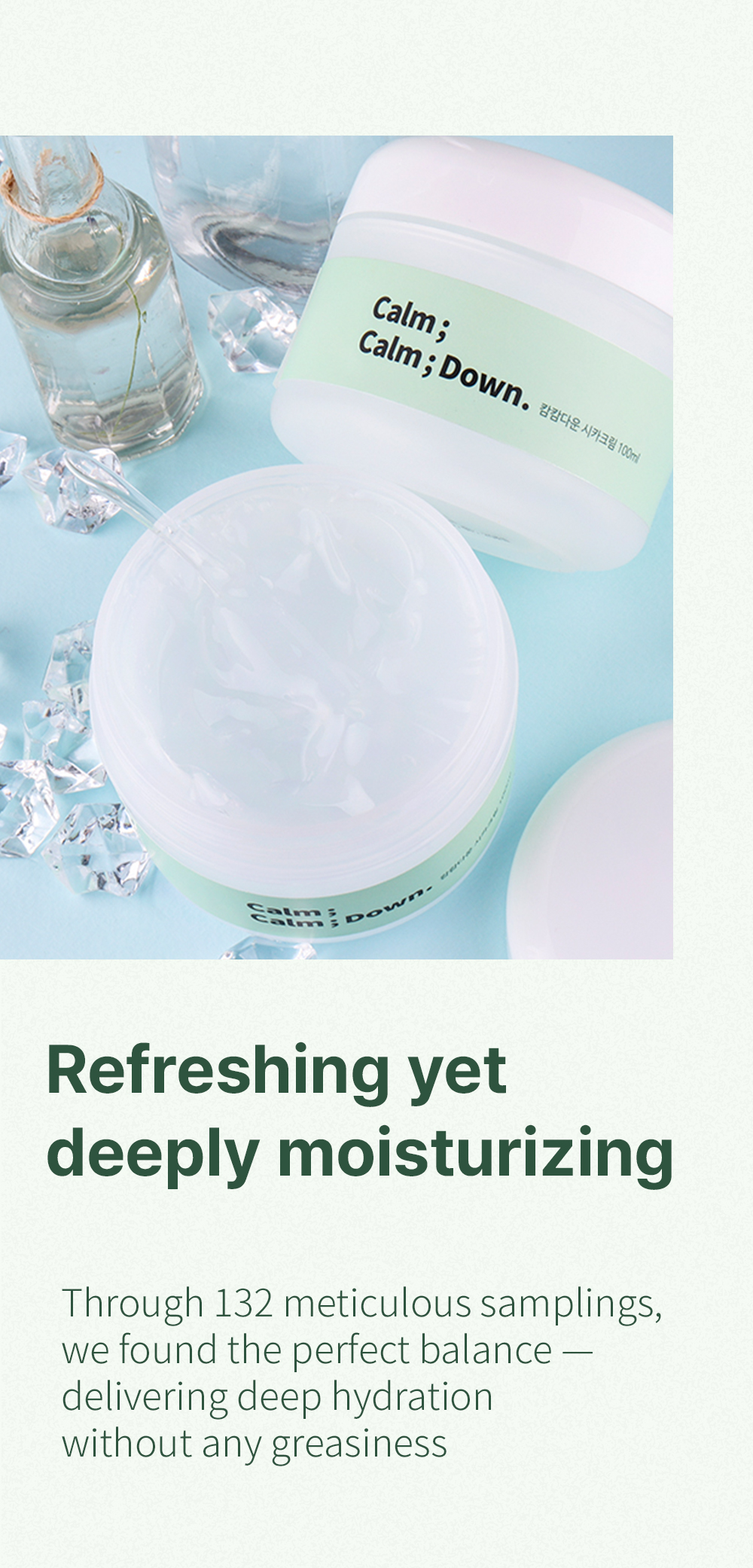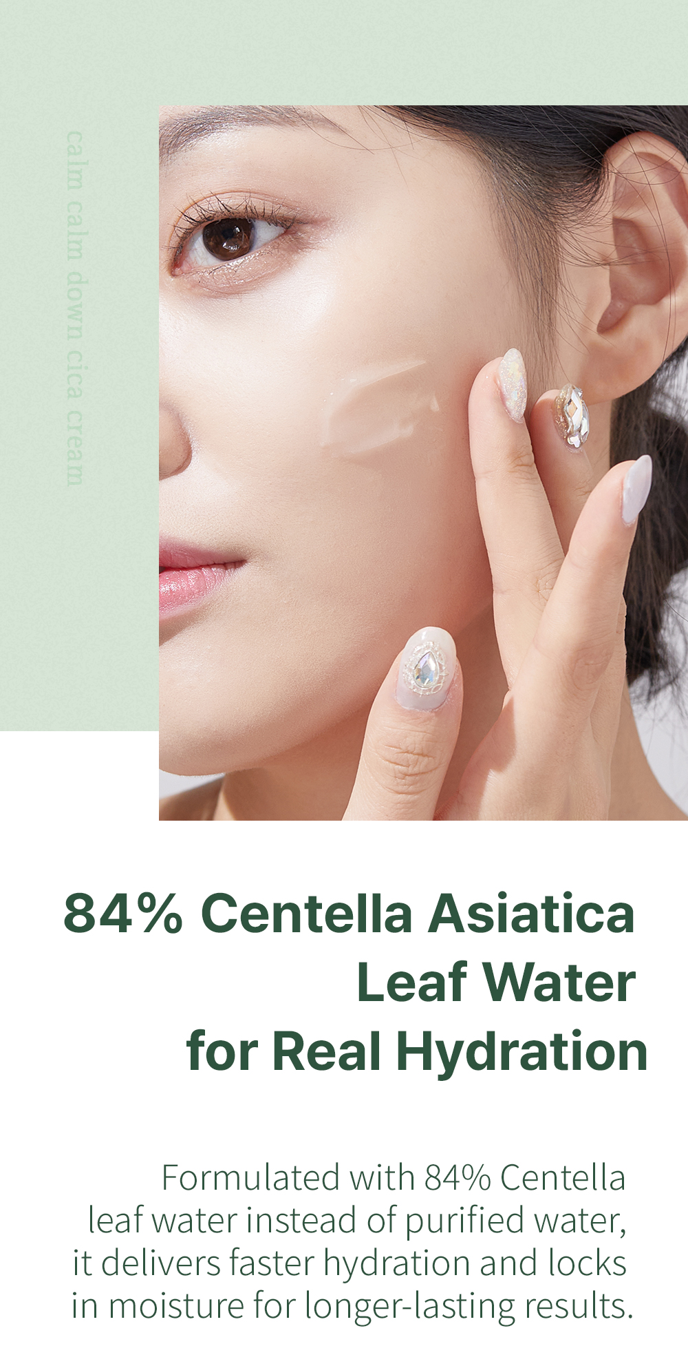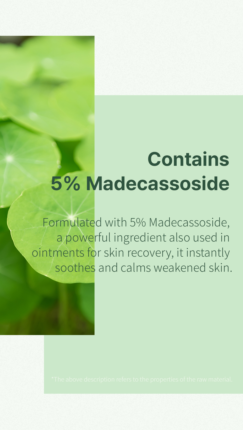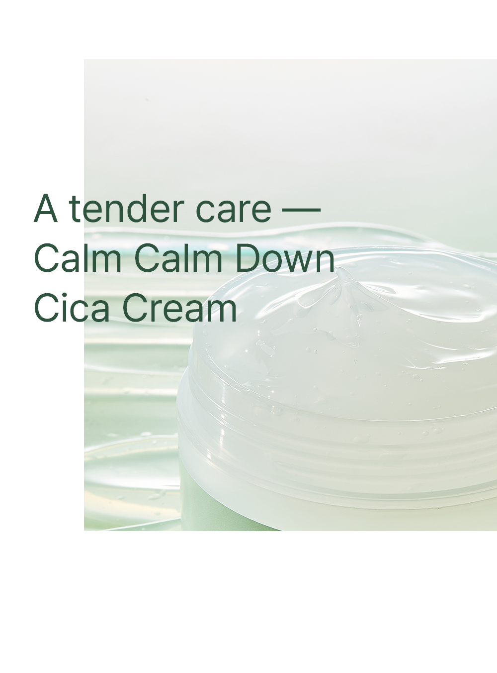 Formulated with 84% Centella Asiatica leaf water and 5% Madecassoside, this lightweight cica cream deeply soothes irritation, reinforces the skin barrier, and provides moisture without heaviness or greasiness.
