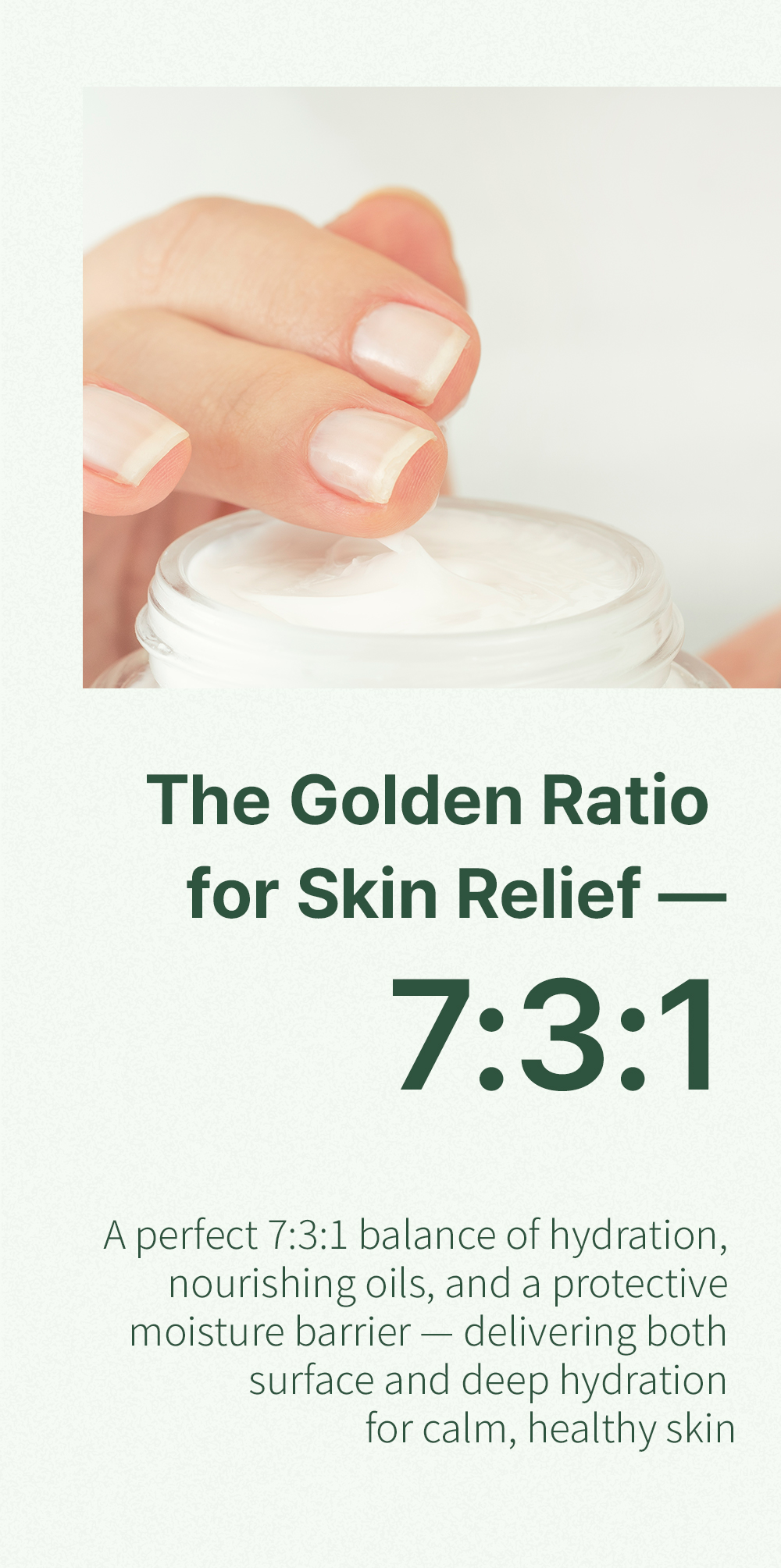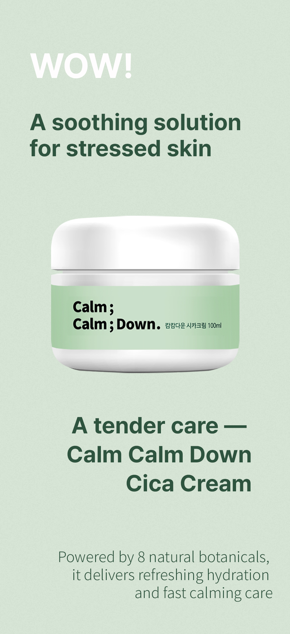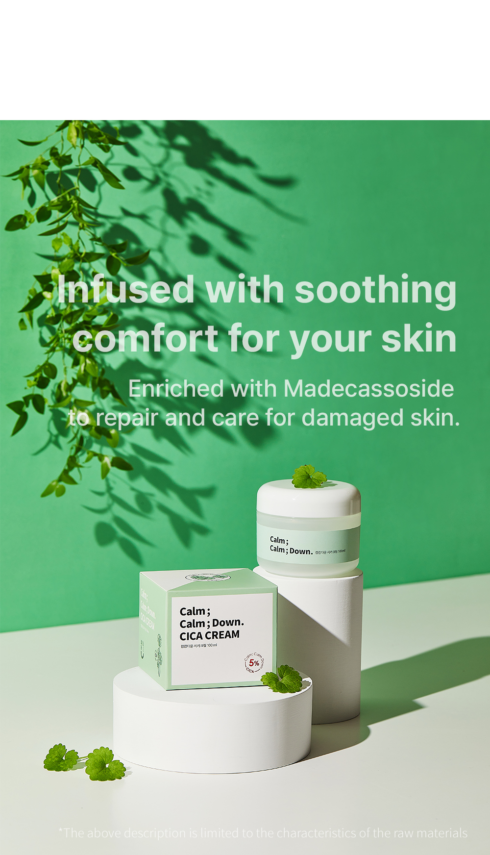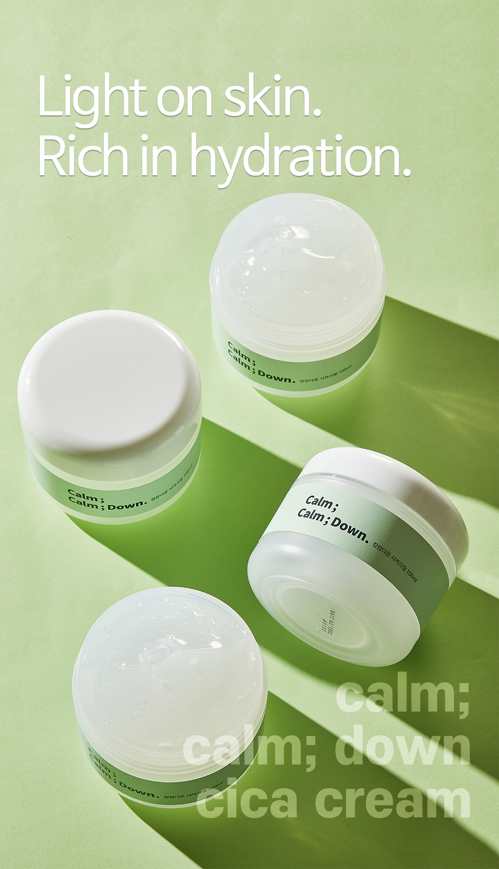 Formulated with 84% Centella Asiatica leaf water and 5% Madecassoside, this lightweight cica cream deeply soothes irritation, reinforces the skin barrier, and provides moisture without heaviness or greasiness.